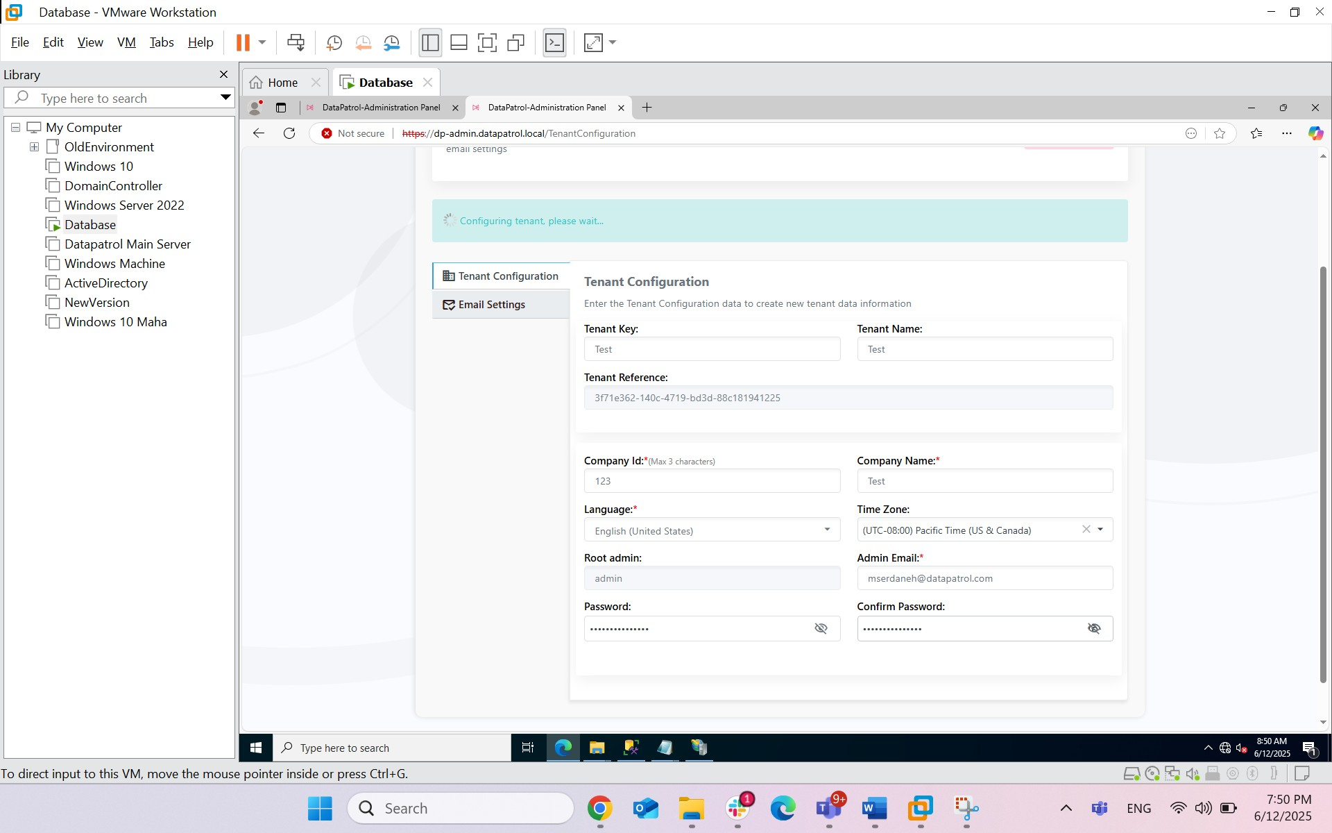 - Admin E-mail: insira o e-mail do administrador do DataPatrol na empresa